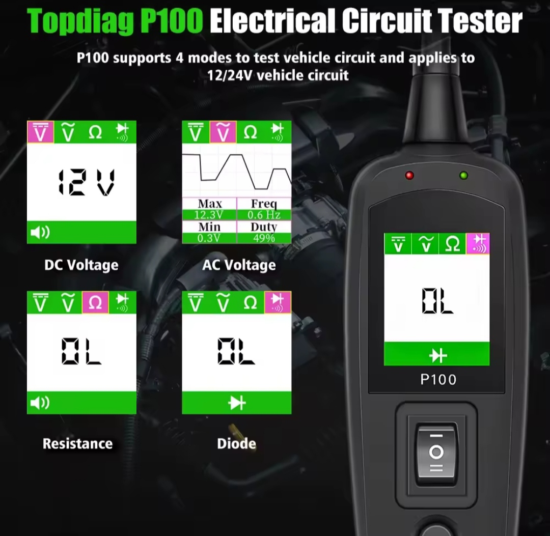 Topdiag P100 هو أداة متقدمة لفحص الأنظمة الكهربائية والإلكترونية في السيارات، مصمم لتوفير حلول تشخيص دقيقة واحترافية في متناول يدك. يجمع بين وظائف متعددة في جهاز واحد، أبرزها خاصية الأوسيلوسكوب الرقمي التي تتيح لك عرض الإشارات والذبذبات الكهربائية مباشرة على الشاشة، وهو ما يجعل هذا الجهاز مميزًا عن غيره في نفس الفئة.